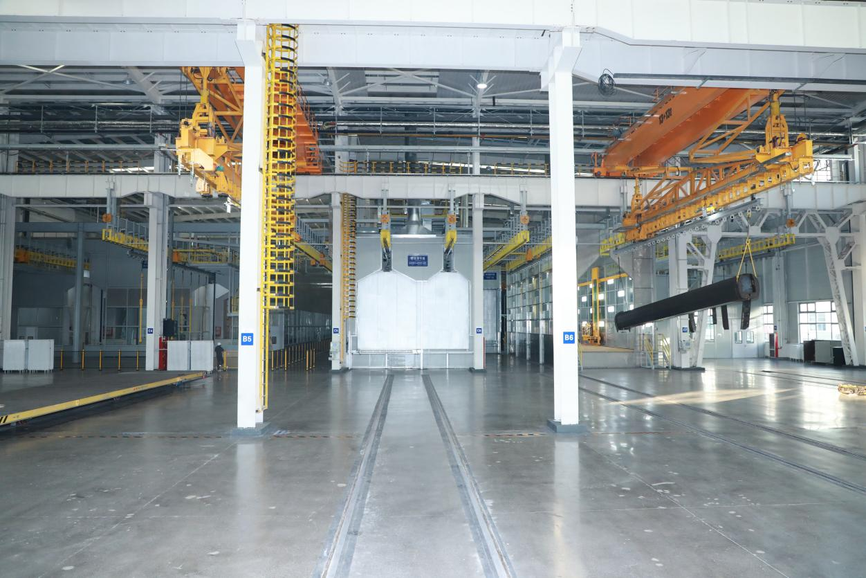 涂裝中心通過(guò)對(duì)標(biāo)國(guó)內(nèi)先進(jìn)裝備制造企業(yè),研判分析國(guó)家環(huán)保形勢(shì)、政策。以“機(jī)械化減人、智能化換人、智能化作業(yè)”為目標(biāo),以“設(shè)備、產(chǎn)線和產(chǎn)品自動(dòng)化、數(shù)字化、智能化、綠色化;業(yè)務(wù)流程數(shù)字化、信息化”原則建設(shè),打造為國(guó)內(nèi)一流的重型裝備制造業(yè)涂裝中心為目標(biāo)建設(shè),提升自動(dòng)化作業(yè)率,實(shí)現(xiàn)噴砂自動(dòng)化作業(yè)率≥96%,噴漆自動(dòng)化作業(yè)率≥92%,作業(yè)人員由160人優(yōu)化為80人。提升涂裝設(shè)備綠色化、智能化水平,采取先進(jìn)的噴粉、水性漆涂裝工藝,廢氣處理采用沸石轉(zhuǎn)輪+RTO處理工藝,達(dá)到廢氣污染防治要求,實(shí)現(xiàn)“超超低”排放要求。