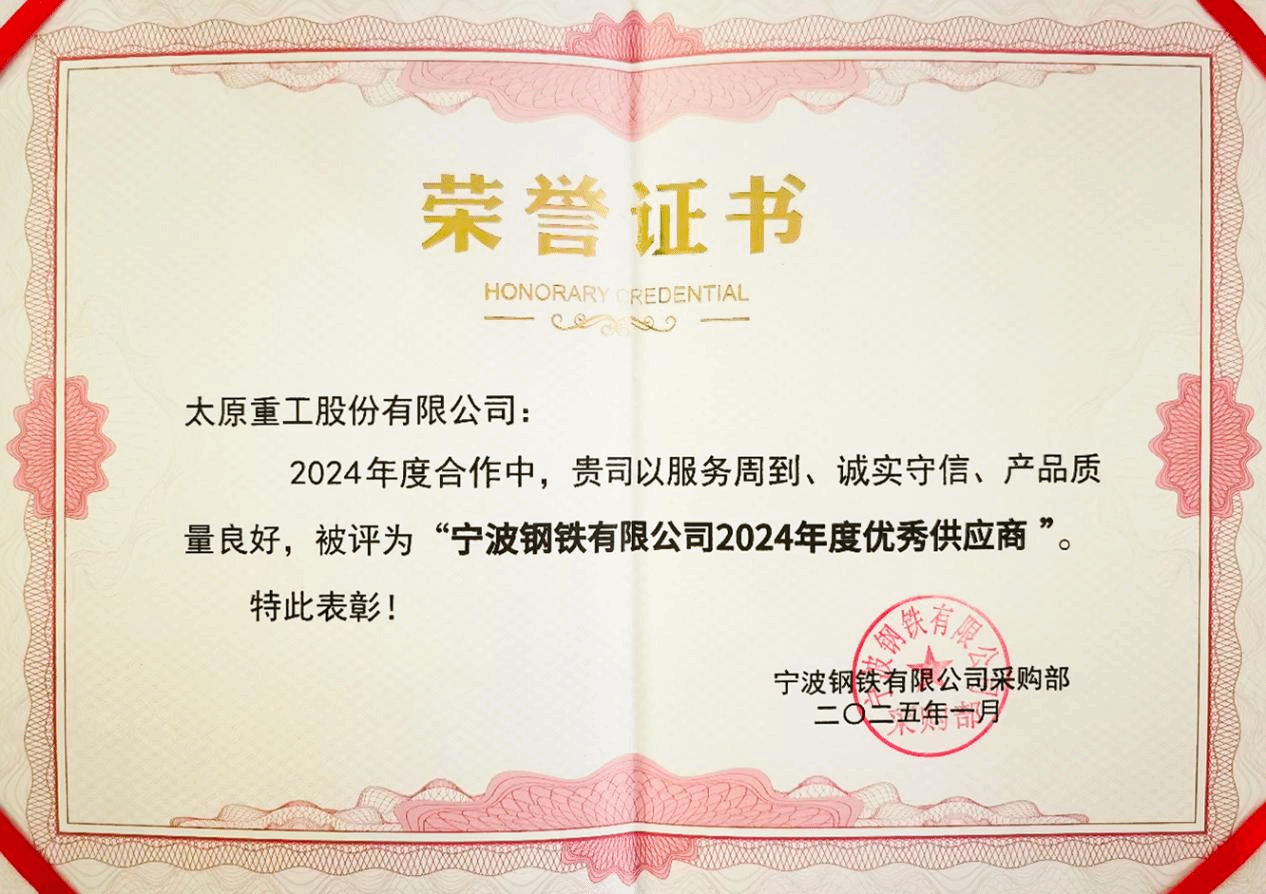 近日,憑借頂尖的技術(shù)實(shí)力、過(guò)硬的產(chǎn)品質(zhì)量、優(yōu)質(zhì)的用戶(hù)服務(wù),太重榮獲“寧波鋼鐵有限公司2024年度優(yōu)秀供應(yīng)商”稱(chēng)號(hào)。值得一提的是,公司已連續(xù)四年獲得此項(xiàng)榮譽(yù),成為用戶(hù)供應(yīng)商體系中的典范。